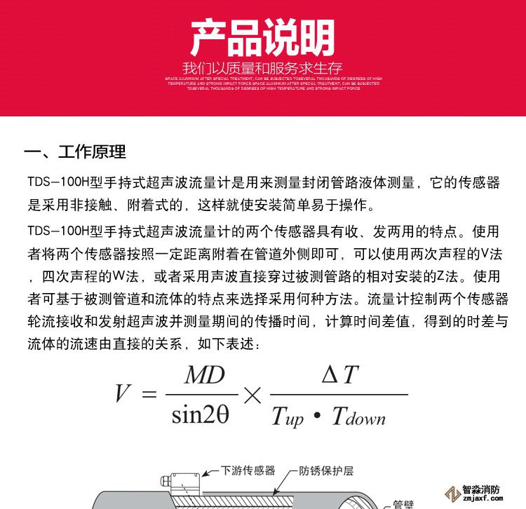 超聲波在流動的流體中傳播時就載上流體流速的信息。因此通過接收到的超聲波就可以檢測出流體的流速,從而換算成流量,圖1。