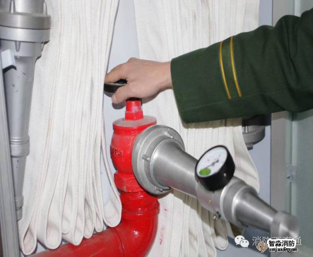 (c)打開消火栓閥門放水此時不應(yīng)壓折水帶,壓力表顯示的水壓即為消火栓栓口的水壓力。
