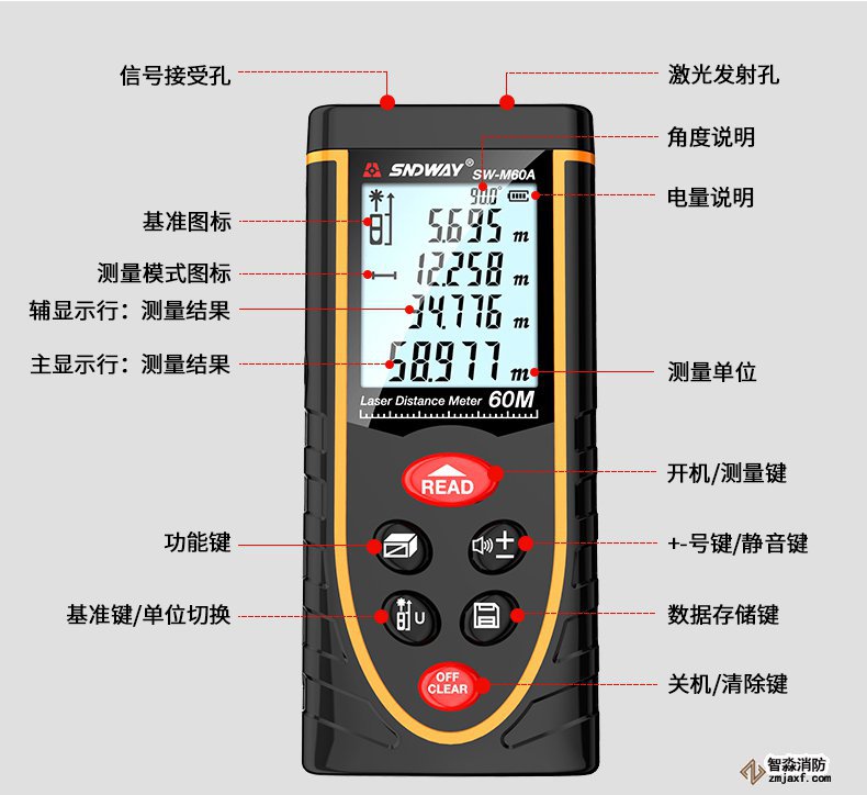 測(cè)距儀是測(cè)量距離的工具,從測(cè)距基本原理,可以分為激光距儀、超聲波距儀和紅外距儀三類。激光測(cè)距儀是目前使用最為廣泛的測(cè)距儀,是利用激光對(duì)目標(biāo)的距離進(jìn)行準(zhǔn)確測(cè)定的儀器。激光測(cè)距儀在工作時(shí)向目標(biāo)射出一束很細(xì)的激光,由光電元件接收目標(biāo)反射的激光束,計(jì)時(shí)器測(cè)定激光束從發(fā)射到接收的時(shí)間,計(jì)算出從觀測(cè)者到目標(biāo)的距離,圖4-1。消防檢測(cè)設(shè)備:WWW.XDJYQ.COM