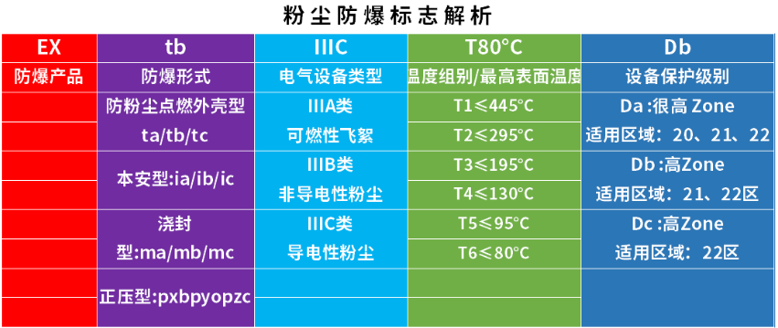 粉塵環境防爆標志示例如“Ex tb IIIC T80°C Db”,其風險控制邏輯與氣體環境存在本質差異: