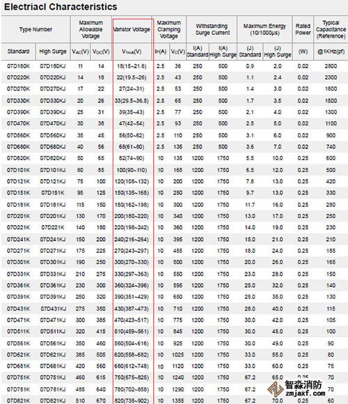 浪涌保護器對照表,只要測量出電壓在612V-748V之間,則可以判斷浪涌保護器合格