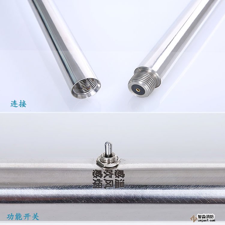 3、連接:根據高度適當選取連接桿數量,然后將槍頭、連接桿、電池桿按順時針的方向轉連接。拆卸按相反的方向操作。